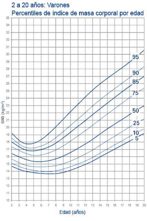 Los médicos escriben la cifra de IMC en un diagrama que tiene las medidas de otros niños de la misma edad y sexo. Esto le permite al médico obtener el percentil de su hijo. El percentil de IMC de un niño permite comparar las medidas de su hijo con las de otros niños o niñas de la misma edad. Así, un niño por encima del percentil 95 se considera que tiene sobrepeso porque el 95 por ciento de la población tiene un IMC inferior al suyo. Un niño en el percentil 50 está cerca del promedio de la población. Un niño debajo del percentil 5 se considera delgado porque el 95 por ciento de la población tiene un IMC superior al suyo.
